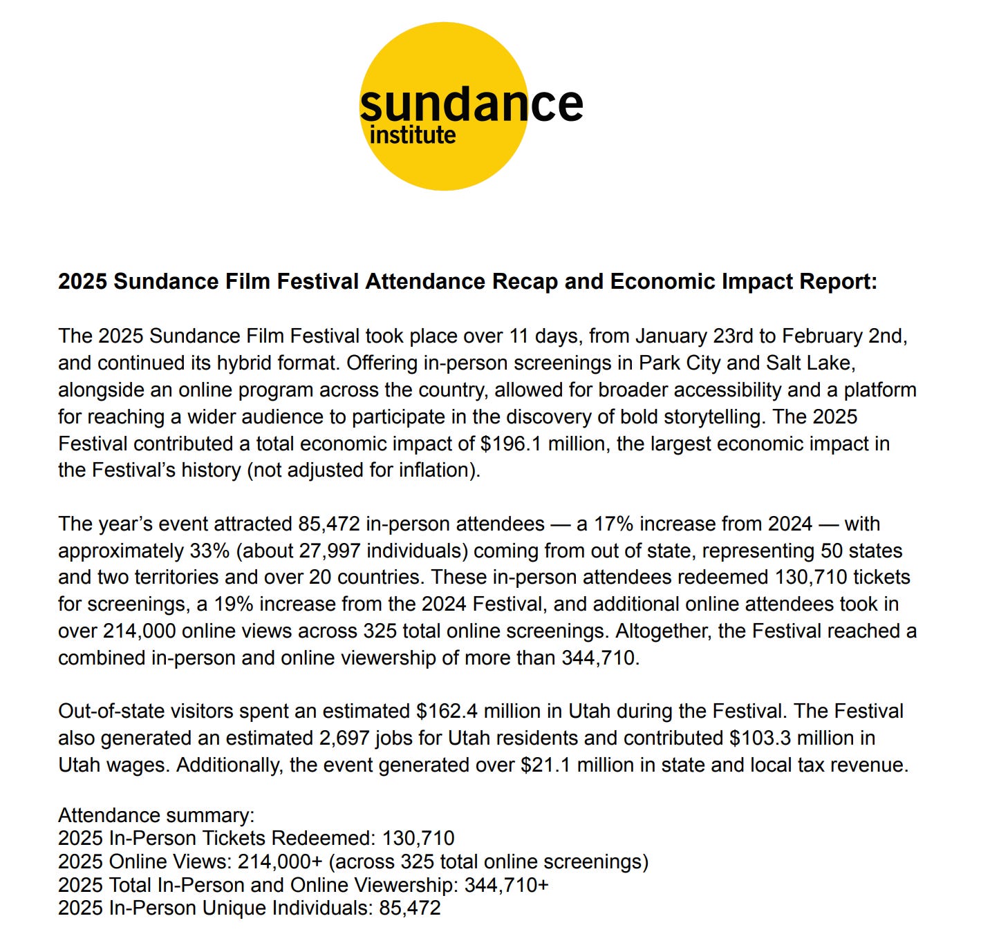 And we’ve got a lot to share with you in preparation for the upcoming festival that will occur January 22 to February 1, 2026 and for the final time in Park City, Utah.